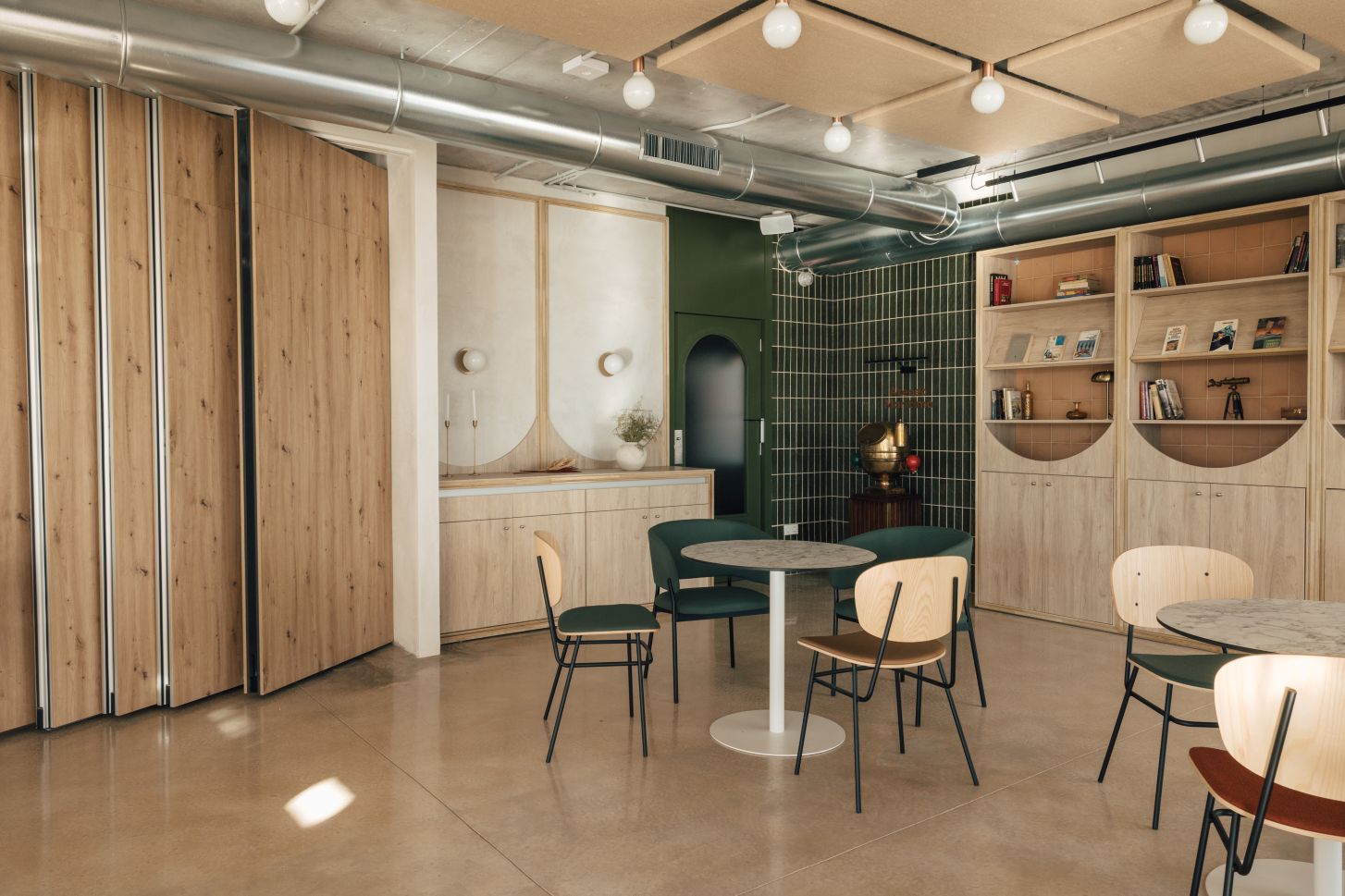 Das Projekt von Hebra Studio befindet sich in einem Coworking-Gebäude und bietet einen Raum, der mediterrane Tradition mit einem zeitgenössischen und einladenden Touch verbindet.