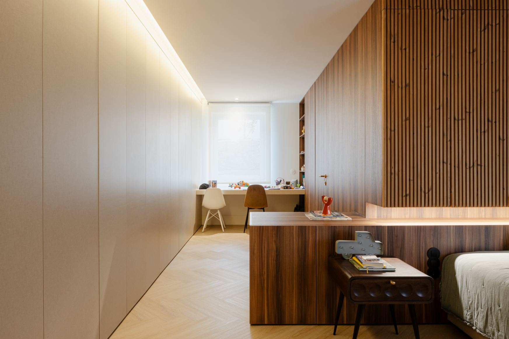 The CJ House project in Coimbra, designed by Artspazios, is a residence that radiates warmth and elegance through a cohesive interior design. Wood takes centre stage, complemented by furniture and walls in light, neutral tones.
