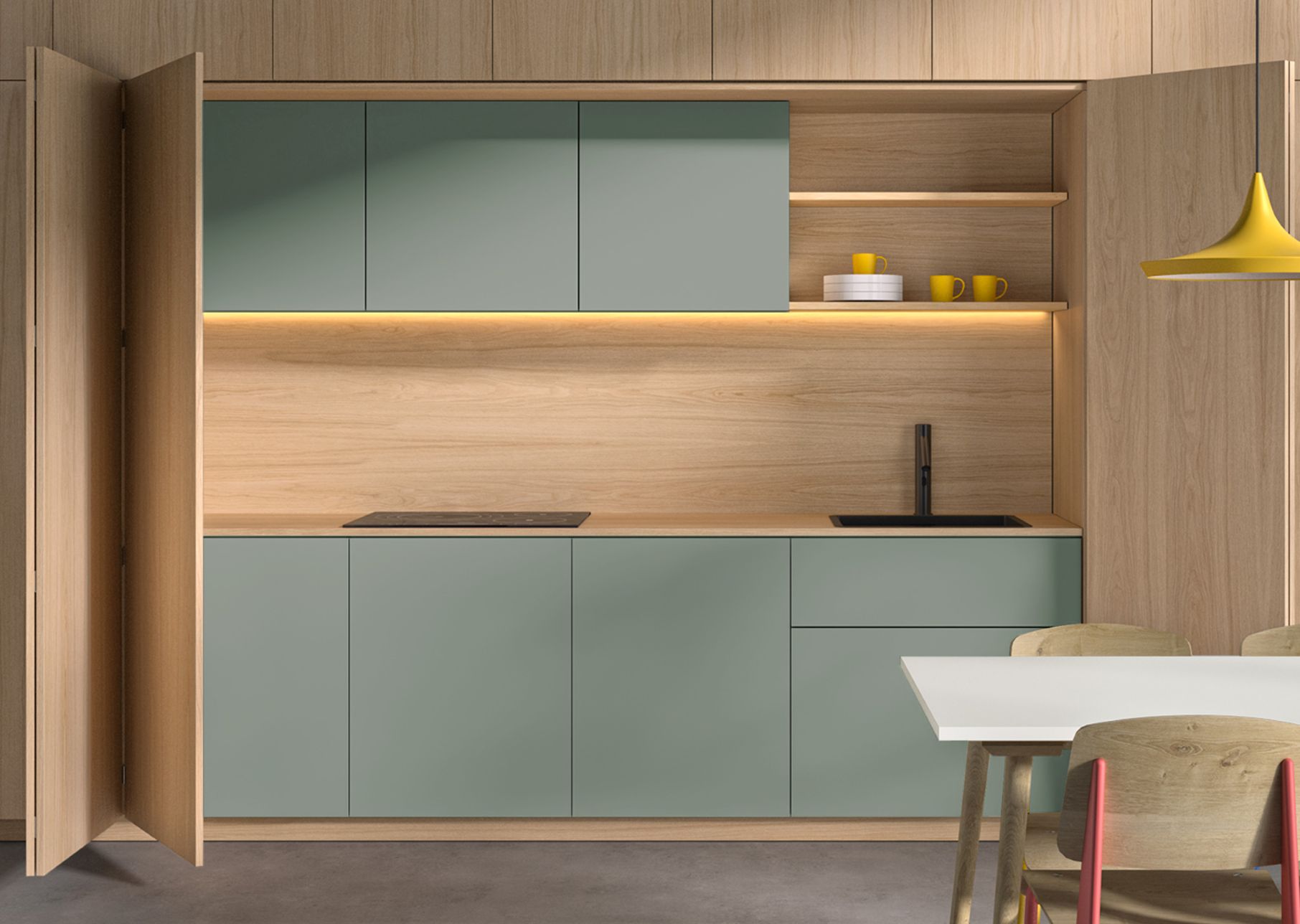 De hecho, hemos incluido tres gamas nuevas: Sense Natur, tablero de chapa de madera natural barnizada, listo para usar. Fabric: tres materiales con alma textil y reciclada: Suede, Linum y Pelle; y, por último, Solid, unicolores brillo y mate. Además, incorporamos nuevos complementos coordinados en todas las gamas: cantos, tapatornillos, perfiles y laminados, entre otros.