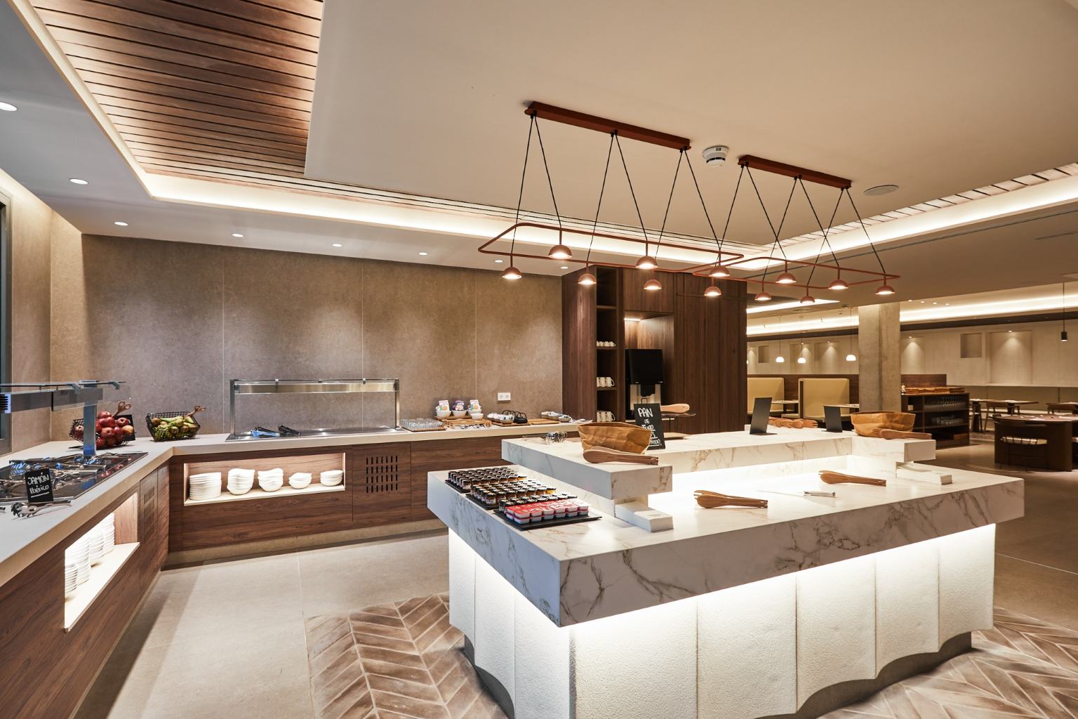 El amplio lobby se distingue por sus panelados y elementos divisorios, que se combinan con texturas caladas, realzando una atmósfera acogedora. Las superficies claras se integran para maximizar la luminosidad y la sensación de amplitud.
