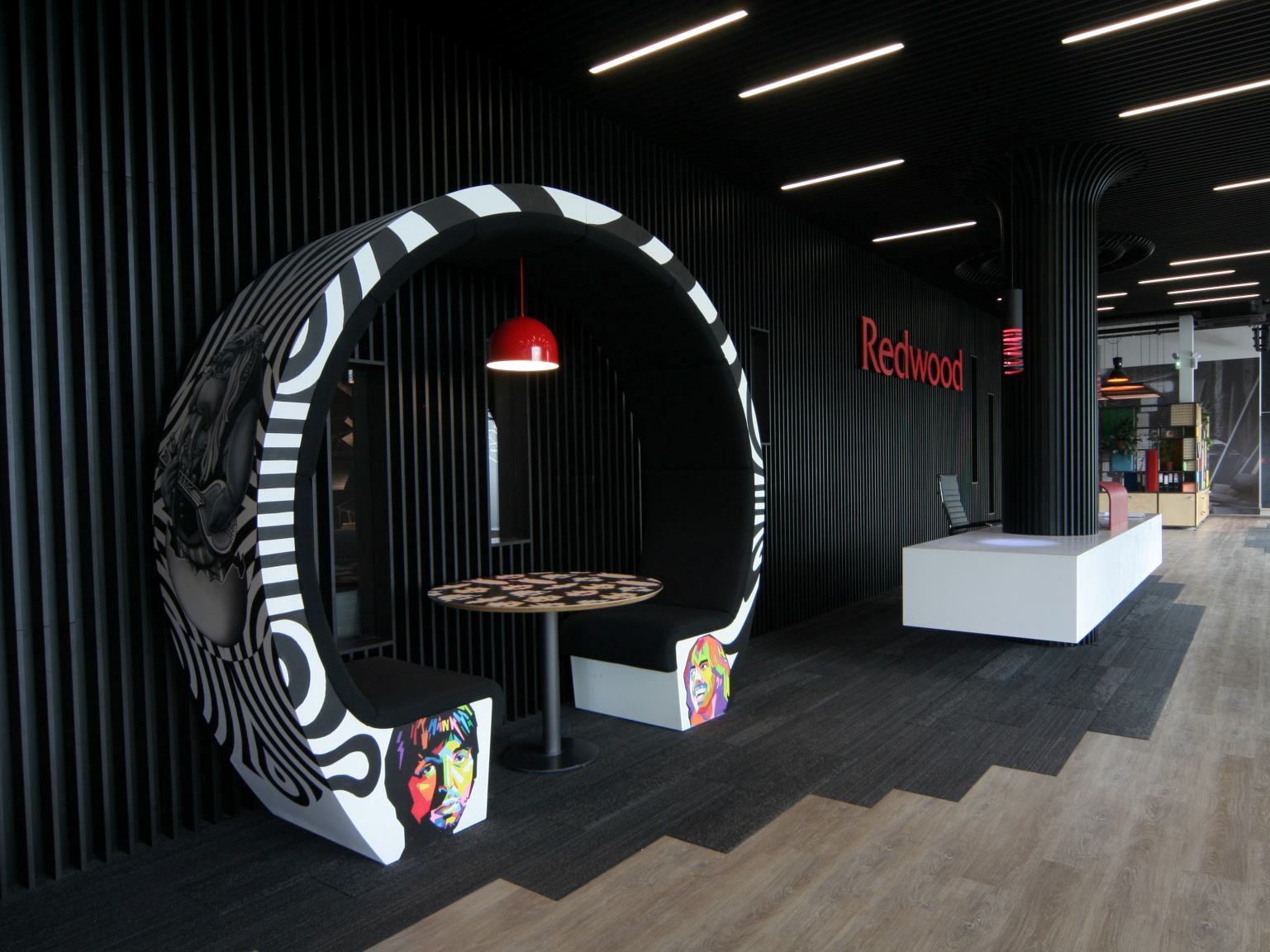 En resumen, Redwood ha diseñado un entorno que busca fomentar la creatividad y la modernidad, demostrando cómo un material base puede definir la identidad de un interior.