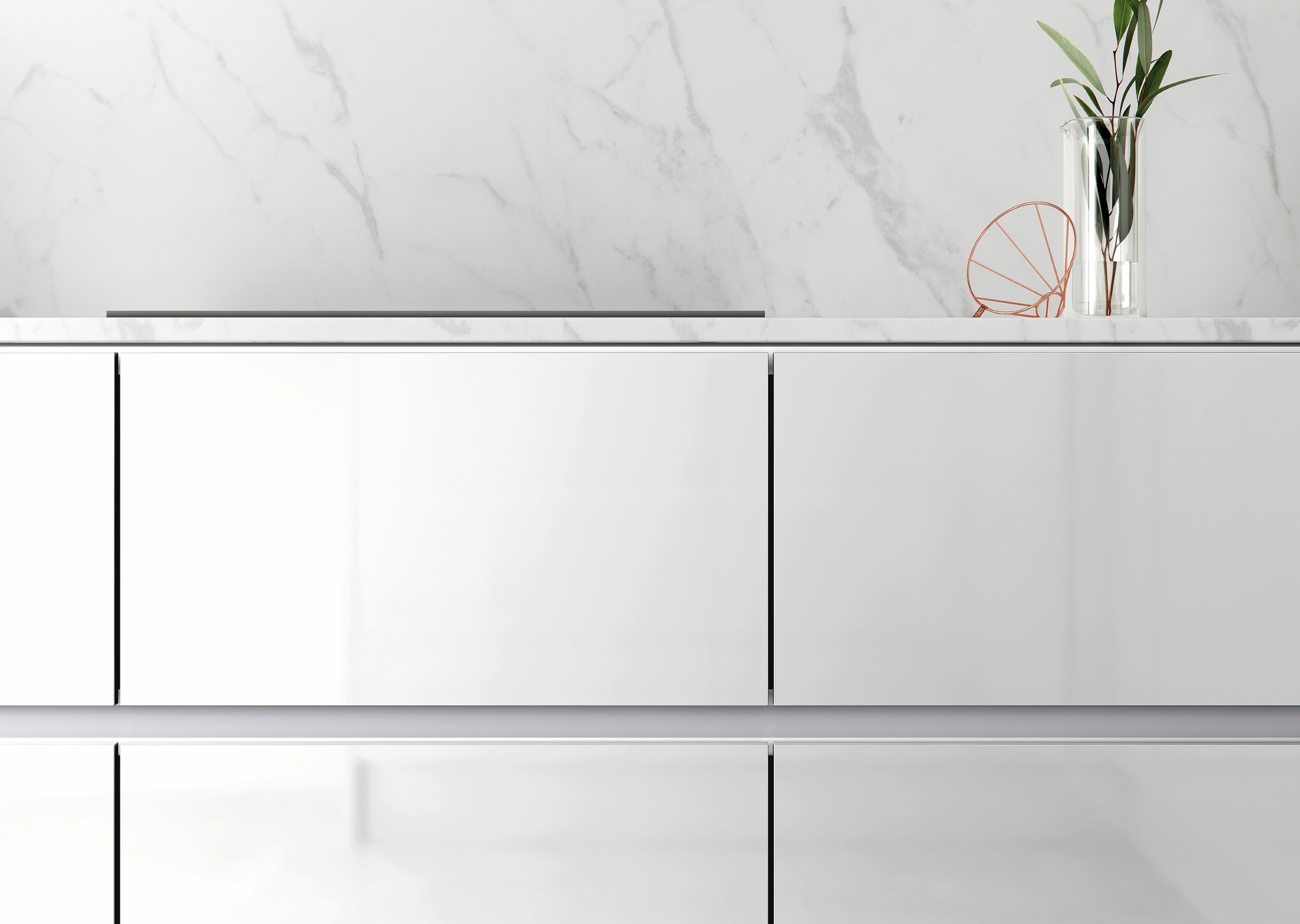 La primera de estas gamas es L100, nuestra línea de superficies brillo más competitiva, con acabado brillo 100 Gloss. Está disponible en cuatro blancos diferentes y tiene como soporte SuperPan® EZ, que potencia su calidad superficial, aporta una mejora al envejecimiento del brillo y además optimiza los procesos de mecanizado. La gama L100 destaca por su superficie lisa y brillante, diseñada para ofrecer una alta resistencia al desgaste y a los arañazos, lo que la convierte en una opción ideal para aplicaciones que exigen durabilidad sin renunciar a la estética.
