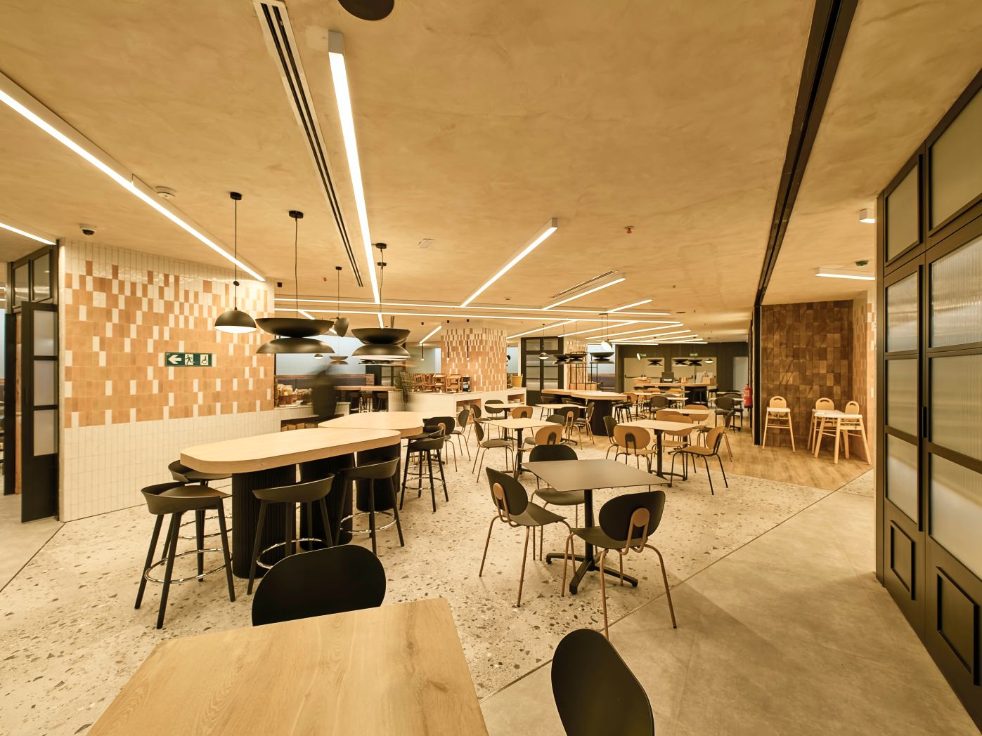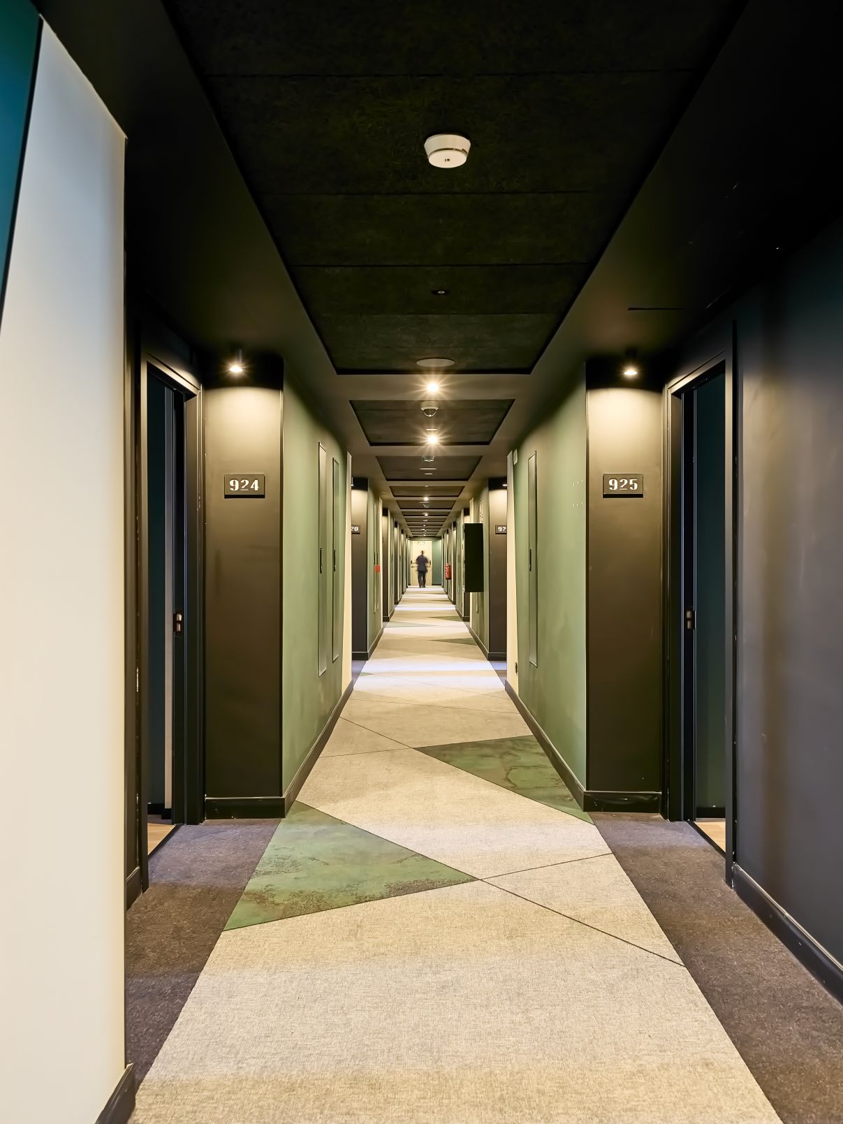 Pour ce projet, réalisé par Cidón, celui-ci a fait appel aux surfaces décoratives de Finsa pour concevoir à la fois les éléments des espaces communs et les portes des chambres. Ainsi, les matériaux Finsa sont présents dans le hall d'entrée, sur le toit-terrasse, dans les salles de réunion, dans l'espace buffet et sur les portes des chambres.