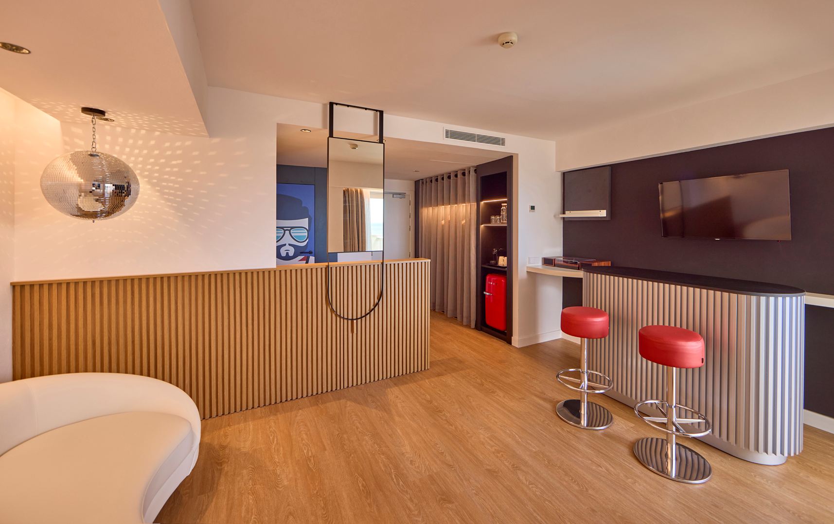 Au cœur du design, FimaPan® Decor Negro Supermate et Finsa Infinite Tricoya ®, laqués en noir, ont été utilisés. Ces produits ont été choisis pour plusieurs applications clés dans tout l'hôtel, notamment les panneaux, les armoires et les bancs dans le bar, contribuant à l'esthétique sophistiquée et contemporaine de l'espace.