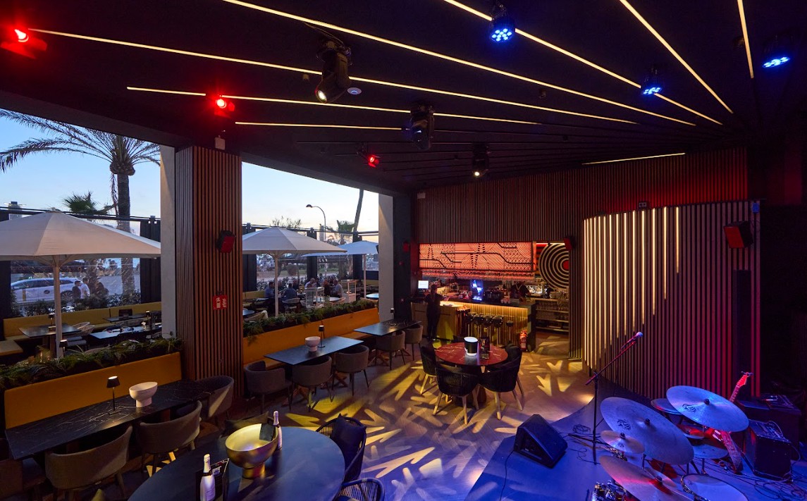 La finition Negro Supermate crée des surfaces profondément opaques et douces au toucher, idéales pour les revêtements muraux et les meubles recherchant un effet visuel minimaliste et sophistiqué. D'autre part, le Finsa Infinite Tricoya ® laqué noir est utilisé pour les applications qui nécessitent une résistance exceptionnelle et une esthétique impeccable. Sa durabilité, associée à une finition laquée de haute qualité, le rend idéal pour les meubles et les panneaux dans les zones à fort trafic comme le bar, où la robustesse est aussi importante que le design.