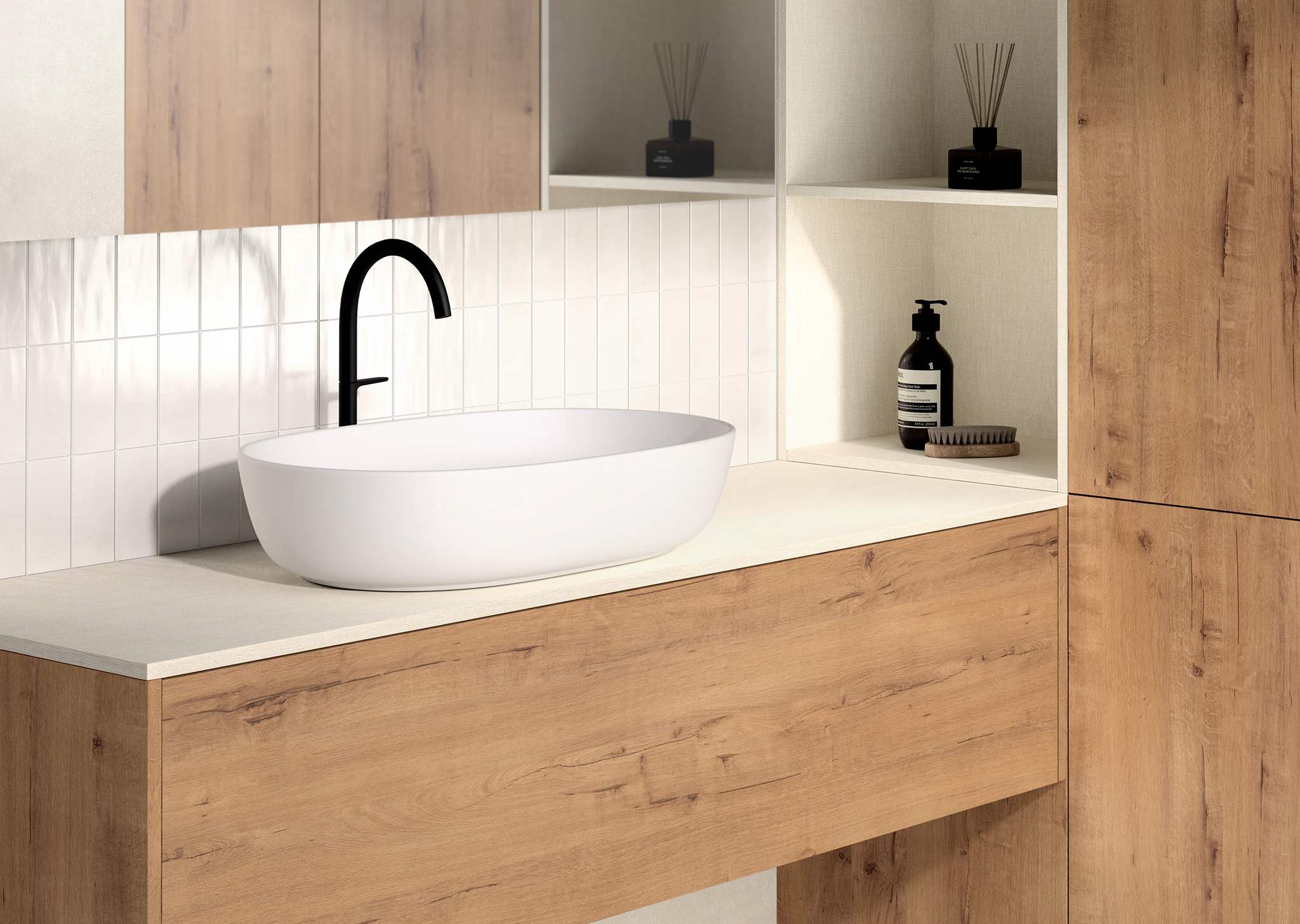 O acrilonitrilo butadieno estireno (ABS) é un termoplástico moi usado no mundo do moble pola súa resistencia, lixeireza e menor impacto ambiental. A concordancia de cor e textura co taboleiro é esencial, por iso ofrecemos a combinación decorativa ideal en cor, brillo e textura coas nosas gamas Finsa Design e os seus complementos.