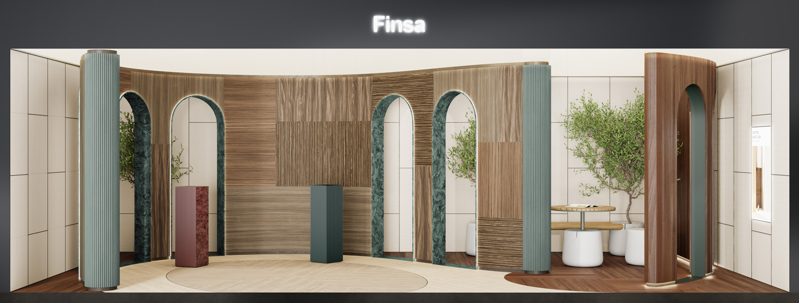 Design i użyteczność zatrą granice in&out w podróży prowadzonej przez zakrzywione łuki. Te zakrzywione panele, rowki, paletyzacja i różne zastosowania podłogowe zademonstrują wszechstronność produktów Finsa, w tym Finfloor XL, zdobywcy nagrody RED DOT 2023 w kategorii Product Design. Układ stoiska będzie również prezentował Orixe, modułową linię mebli ogrodowych Savia.
