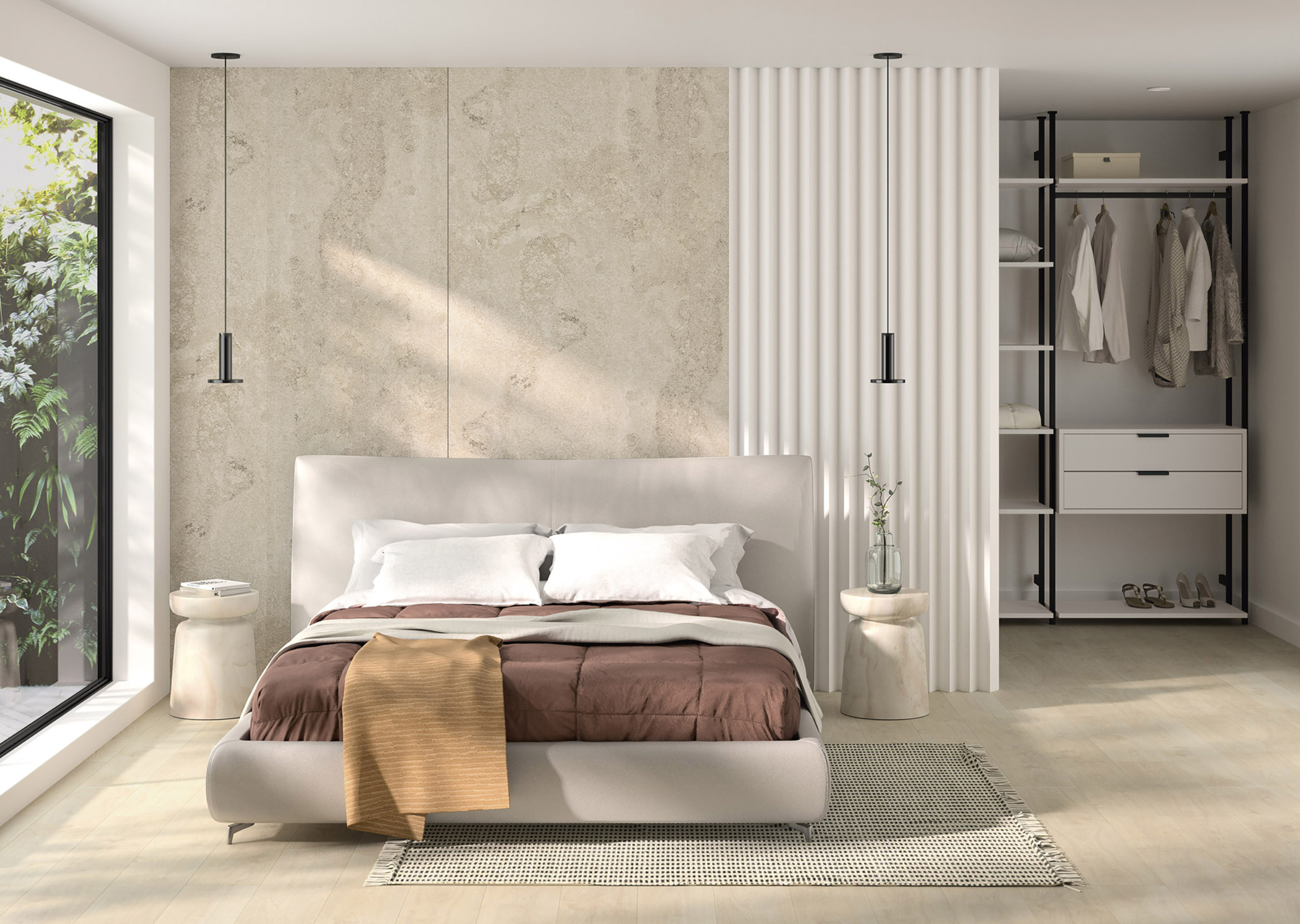 O painel com superfície decorativa da gama Duo Crema Sil em acabamento Soft III oferece um cinzento muito claro que pode funcionar como branco sujo.